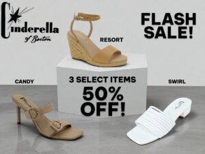 Flash Sale!! Boots | Heels | Wedges | All Products | Sales Rack 50% off these items for a limit time! Don’t wait long! Save up to 40% on all items!! Shop now LIMITED TO STOCK ON HAND www.CinderellaOfBoston.comWomen’s Sizes 2 – 5 1/2 Share this post Facebook Twitter Pinterest